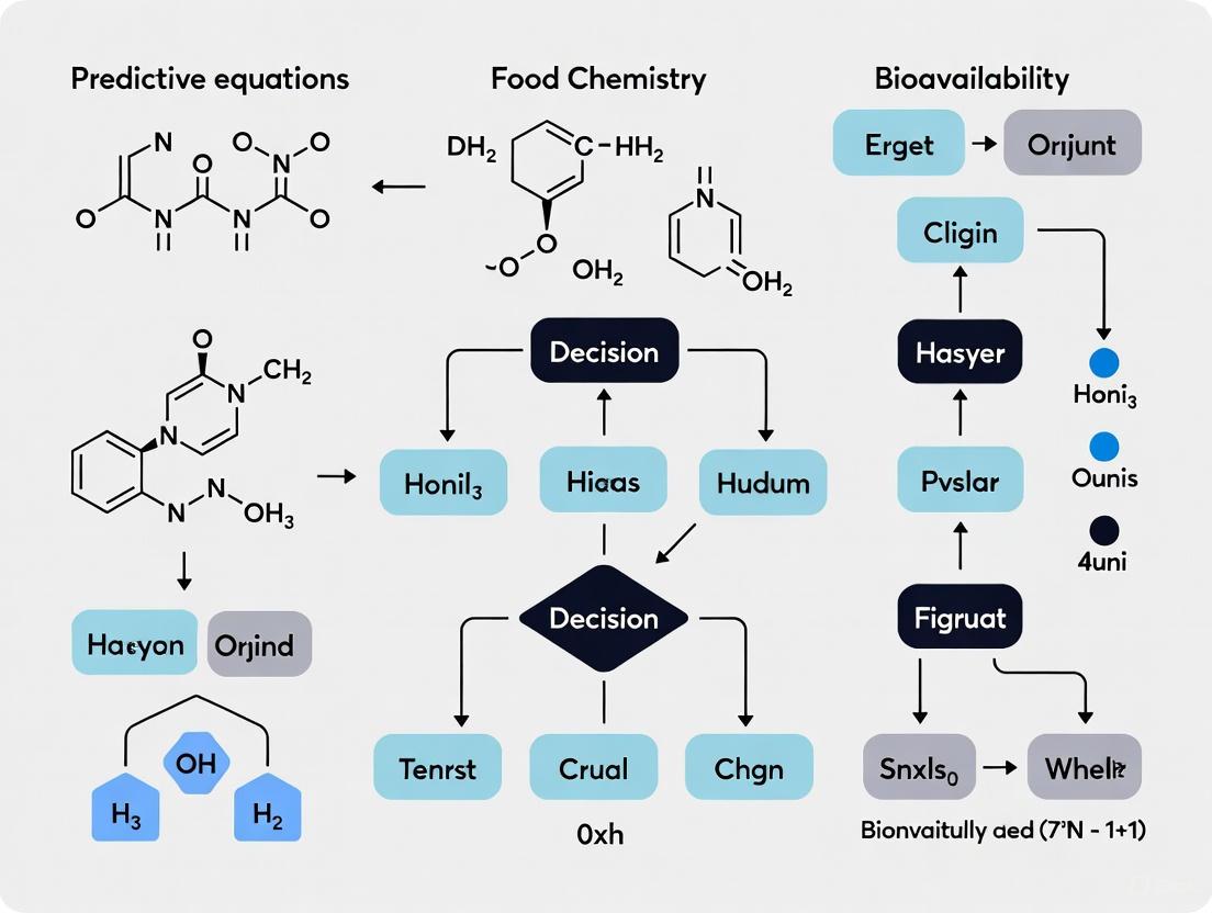 The consequences of inaccurate bioavailability estimates are substantial across these domains. In nutrition, overestimating bioavailability can lead to persistent nutrient deficiencies despite apparently adequate intake, while underestimation may drive unnecessary supplementation or food fortification. In pharmacology, inaccurate predictions directly impact therapeutic efficacy and safety, potentially resulting in treatment failure or adverse drug reactions. A unified framework for developing predictive equations across these disciplines enables more efficient resource allocation in research and product development while improving outcomes for end users. This document presents specialized protocols and application notes for researchers developing and applying these vital predictive tools.