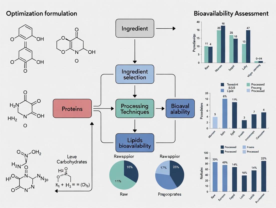 This article provides a comprehensive analysis of modern strategies for optimizing food formulations to enhance the bioavailability of bioactive compounds and oral drugs. It explores the foundational science of absorption barriers, details advanced methodological approaches including multi-objective optimization and novel delivery systems, and addresses key challenges in reformulation and consumer acceptance. Aimed at researchers, scientists, and drug development professionals, the content synthesizes current research and technological innovations, offering validated frameworks and comparative analyses of profiling models to guide the development of efficacious functional foods and nutraceuticals.
