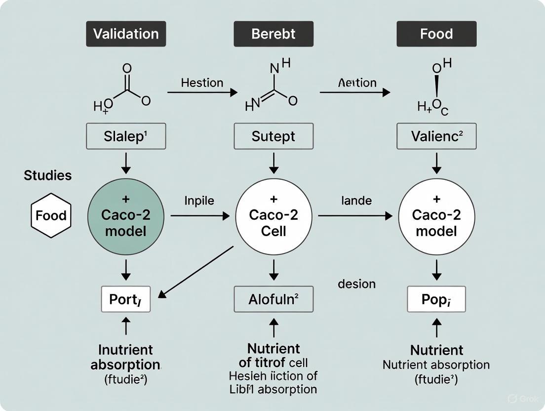 This article provides a comprehensive overview of the validation and application of the Caco-2 cell model in nutrient absorption studies. It covers the foundational principles of this established in vitro system, detailing its physiological relevance and key functions such as tight junction formation and transporter expression. The content explores methodological protocols, including the combined in vitro digestion/Caco-2 system for predicting iron bioavailability and advanced analytical techniques like UPLC-MS/MS for accurate compound quantification. It addresses common challenges and optimization strategies, such as implementing real-time impedance assays to improve throughput and data quality. Finally, the article examines critical validation paradigms, comparing Caco-2 performance against emerging models like enteroid-derived cells and human data, and discusses the integration of in silico tools like machine learning for predictive modeling. This resource is tailored for researchers, scientists, and drug development professionals seeking to robustly apply and validate the Caco-2 model in nutritional science and bioavailablity research.